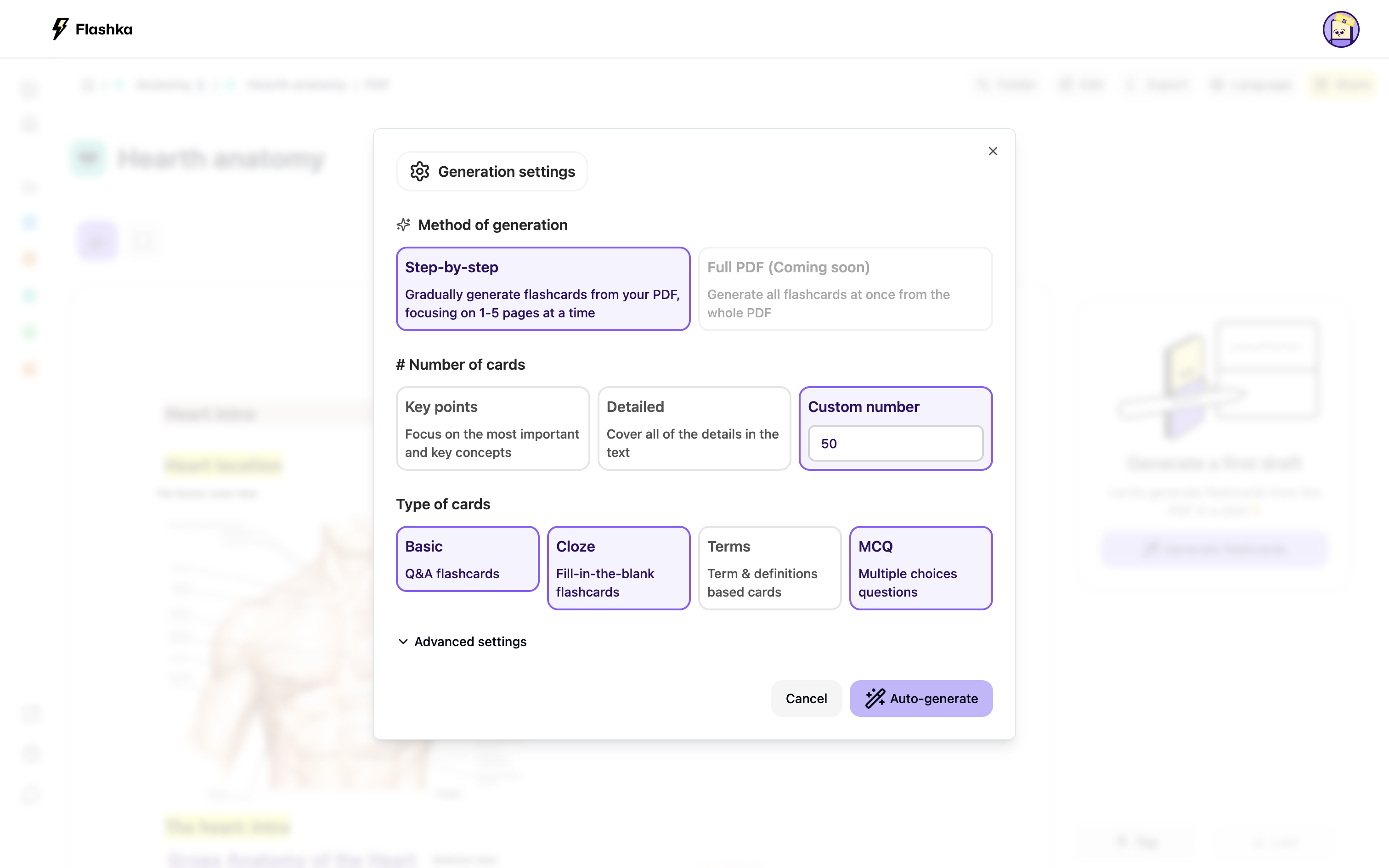 We’re cooking up a feature that’ll let you generate flashcards for an entire PDF with just one click!