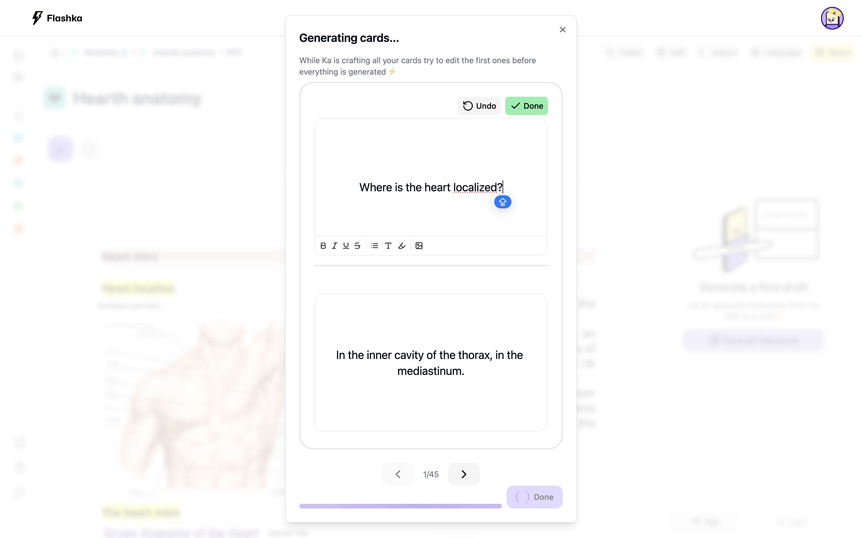 You can start editing or deleting the first few cards as they generate, even while Ka is still working on the rest! Check out the example above 👆