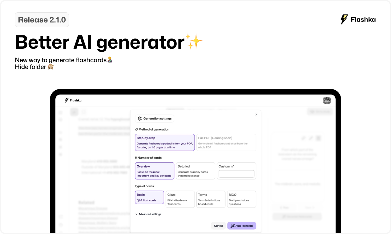 We’re thrilled to introduce an better and more customisable way to generate your flashcards!