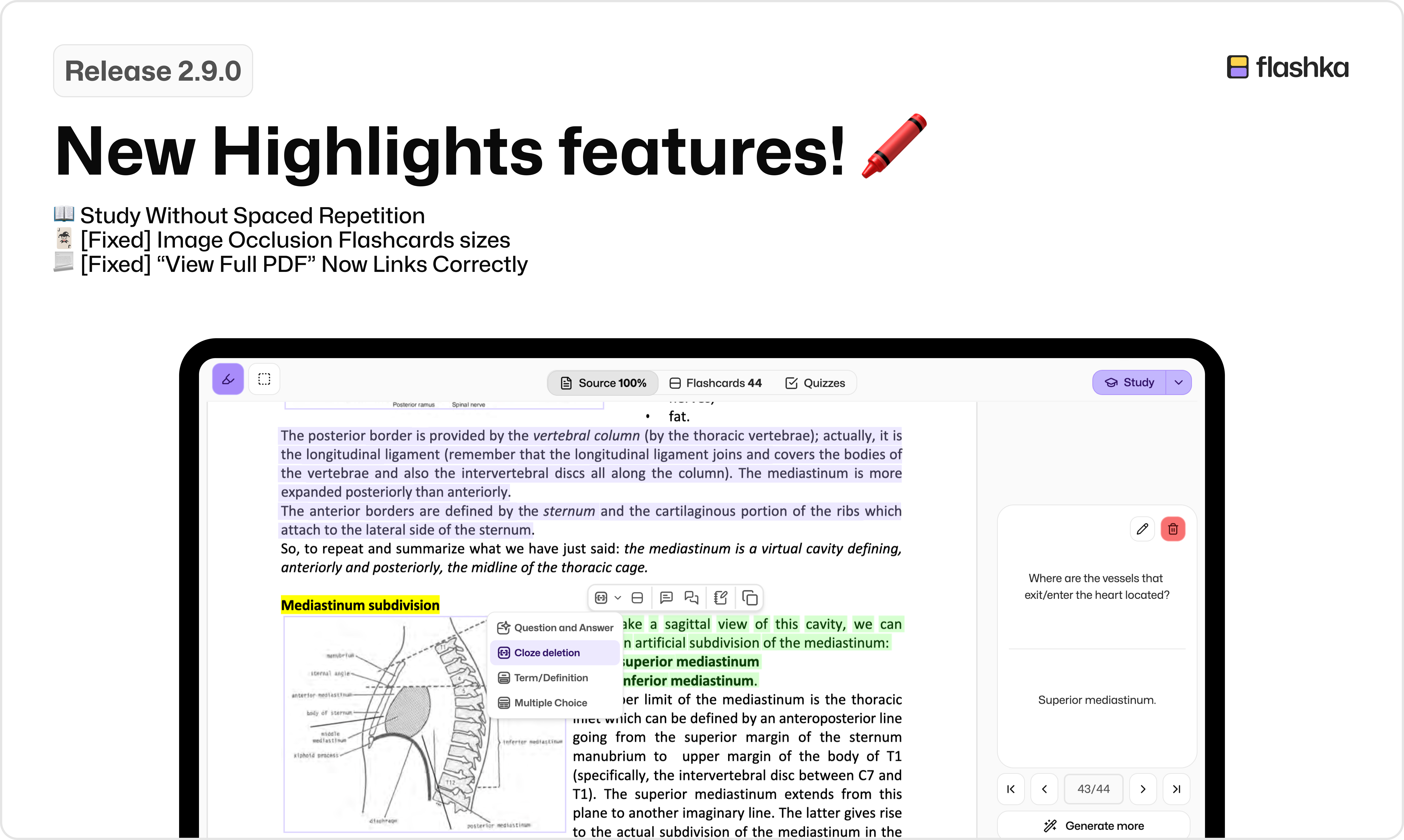 We’ve fixed the image occlusion issue, introduced new study modes, and improved flashcard creation from highlights.