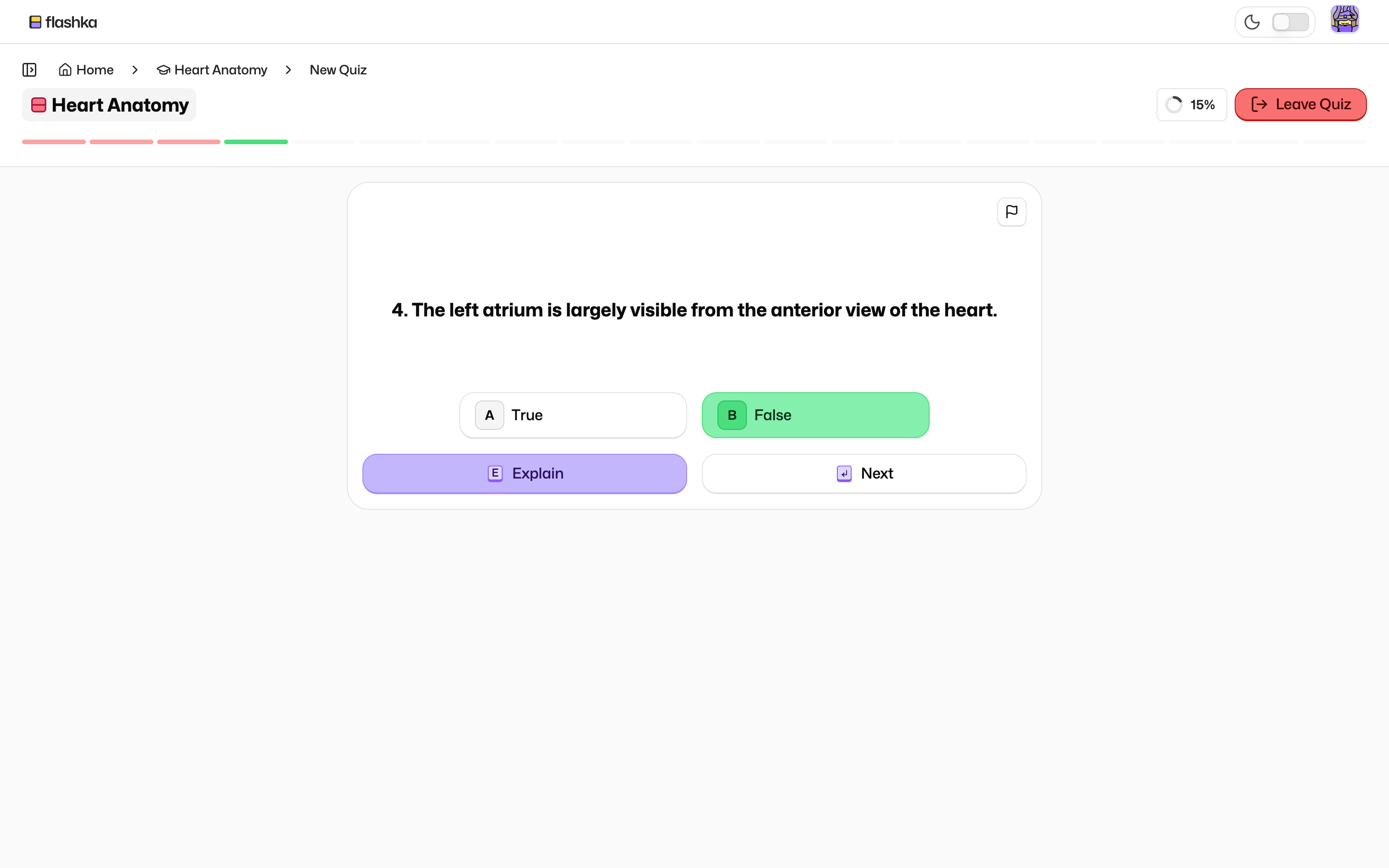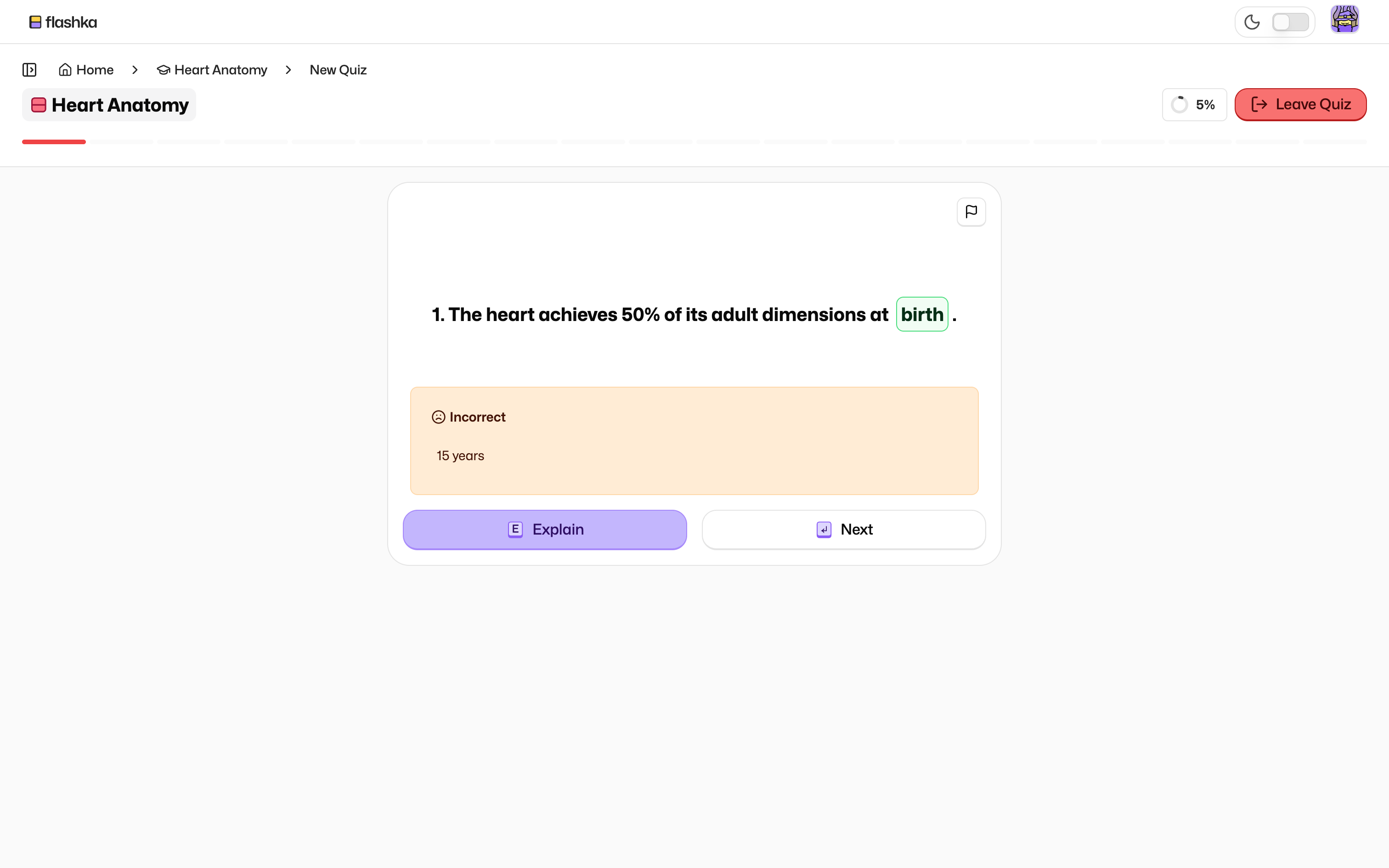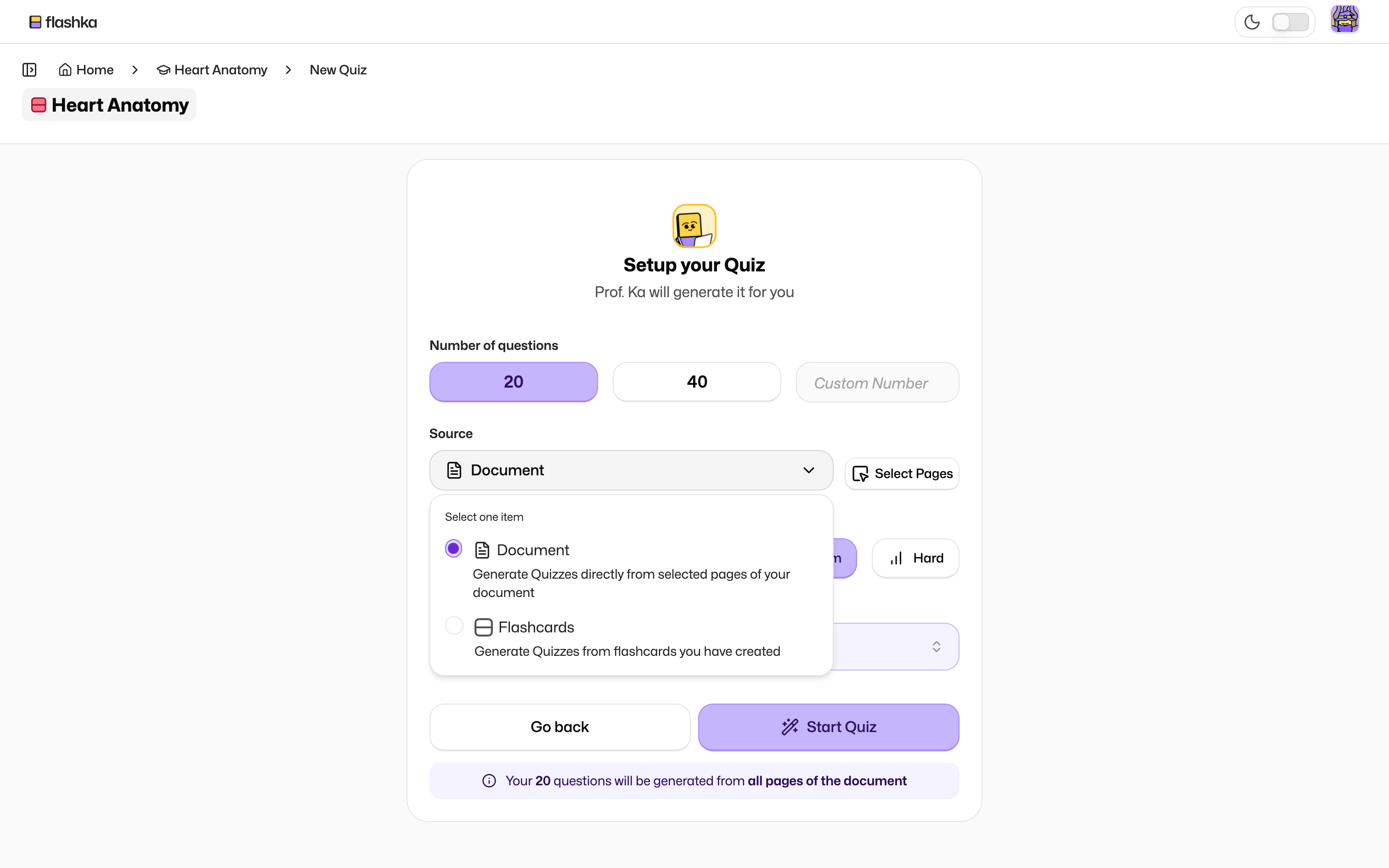Start a quiz from your sources right inside any deck (even if it has no flashcards yet) or quiz from your flashcards as usual